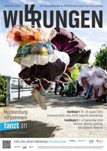 Die Produktionsresidenzen boten den eingeladenen Tanzschaffenden für einen Zeitraum von bis zu drei Wochen Arbeitsräume und Unterbringung in dem Residenzort Schloss Bröllin. In ländlicher Abgeschiedenheit konnten sie dort konzentriert ein abendfüllendes Stück erarbeiten, das anschließend in Mecklenburg-Vorpommern auf Tour ging.